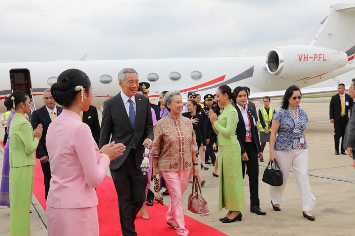 国际 新加坡共和国总理李显龙先生和配偶抵达曼谷 由 中时 - 2019年11月2日 (中华时报讯)记者晓港曼谷报道:2019年11月2日,新加坡共和国总理李显龙先生和其配偶抵达曼谷,参加2019年11月2日至4日举行的第35届东盟峰会,并受到数字经济与社会部长Buddhipongse Punnakanta先生及其配偶的接机。