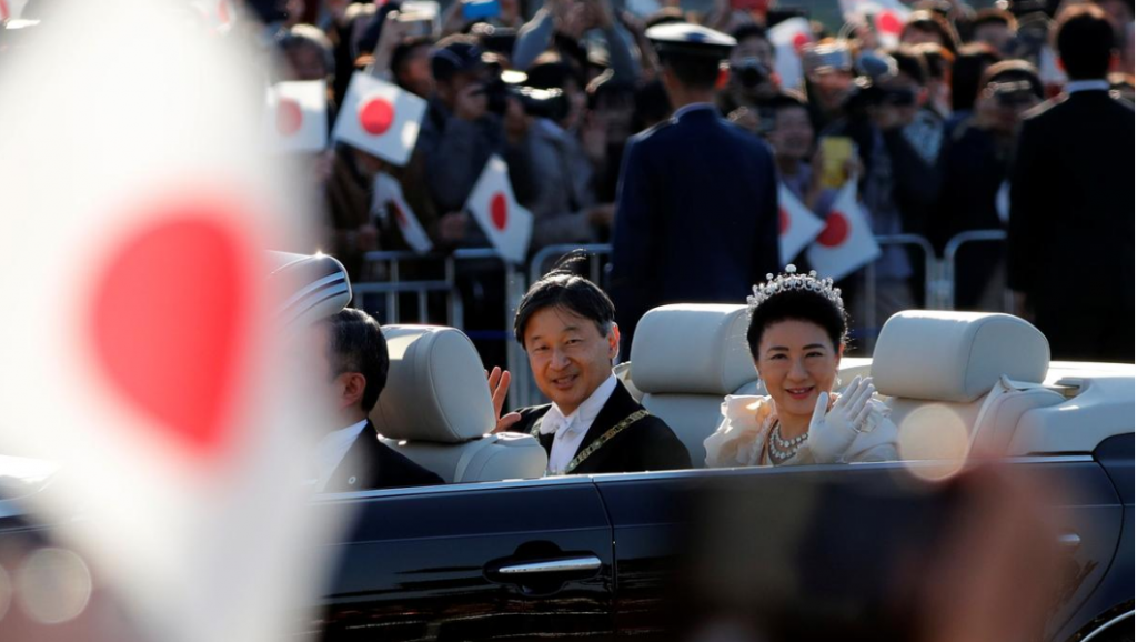 日本天皇皇后于10日下午3时开始,举行了向国民表明即位的“祝贺御列之仪”巡游。两人乘坐敞篷车在从皇宫出发,至两人的住所进行了巡游,路程约4.6公里,沿途聚集了很多为观看巡游和祝福即位而来的人。天皇皇后满面笑容,向沿路的人们招手致意。