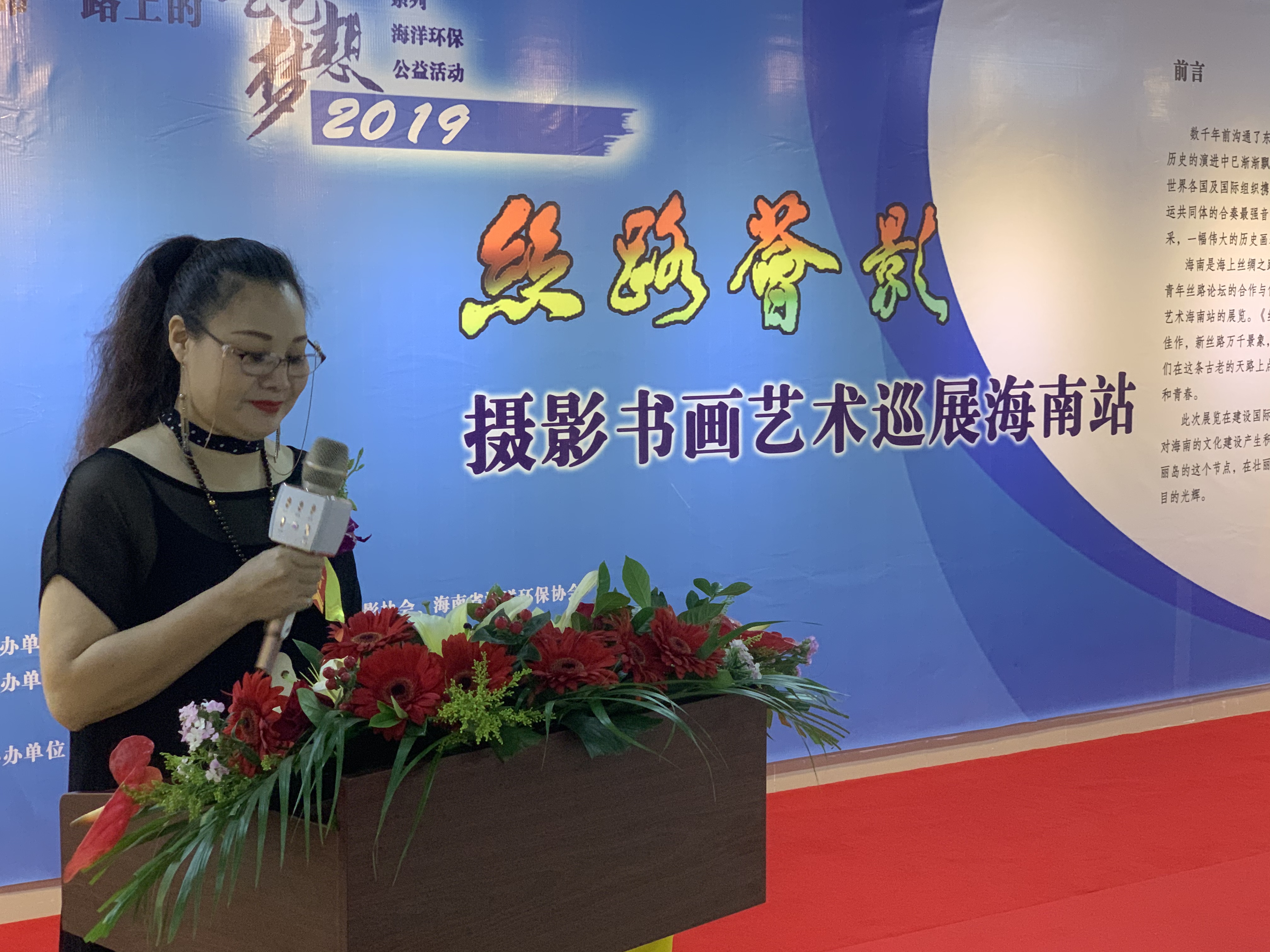 在启动仪式上,海南省海洋环保协会会长陈慧致辞时表示,庆祝建国70周年之际,海南站巡展是我们一起向祖国礼赞和祝福。她介绍此次巡展也是「蓝色梦想2019」系列海洋环保暨第五届南海海龟保护活动 之一。