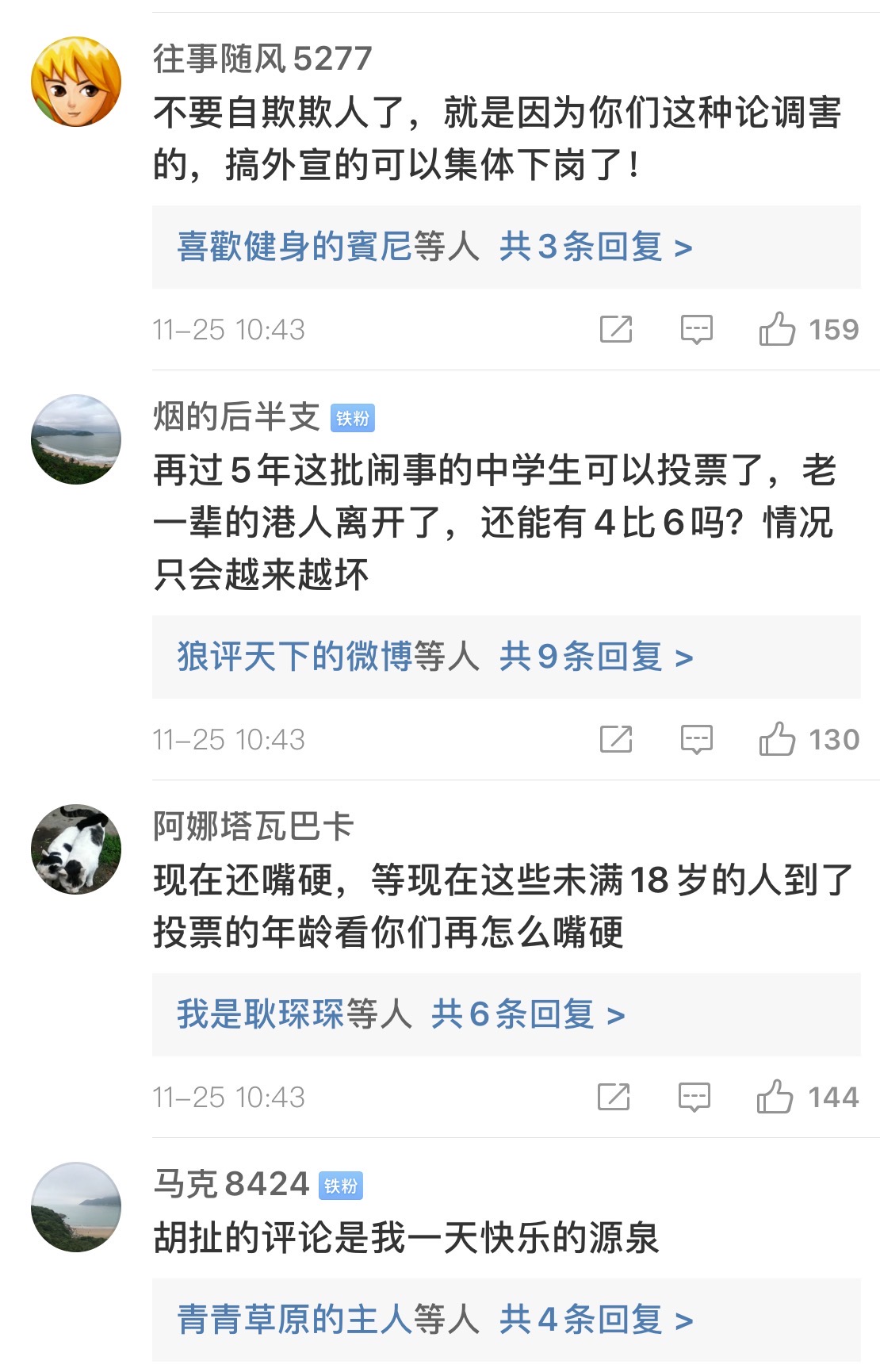 西方那些势力和香港的激进势力都想把这次投票搞成政治示威,否定止暴制乱是香港当前最紧迫的任务。但我们要说,泛民这一次得到更多席位,并不意味着这是香港选民对暴力示威的支持。大多数港人已经厌倦暴力,希望重建秩序,对香港民意这一基本面的判断不会错。