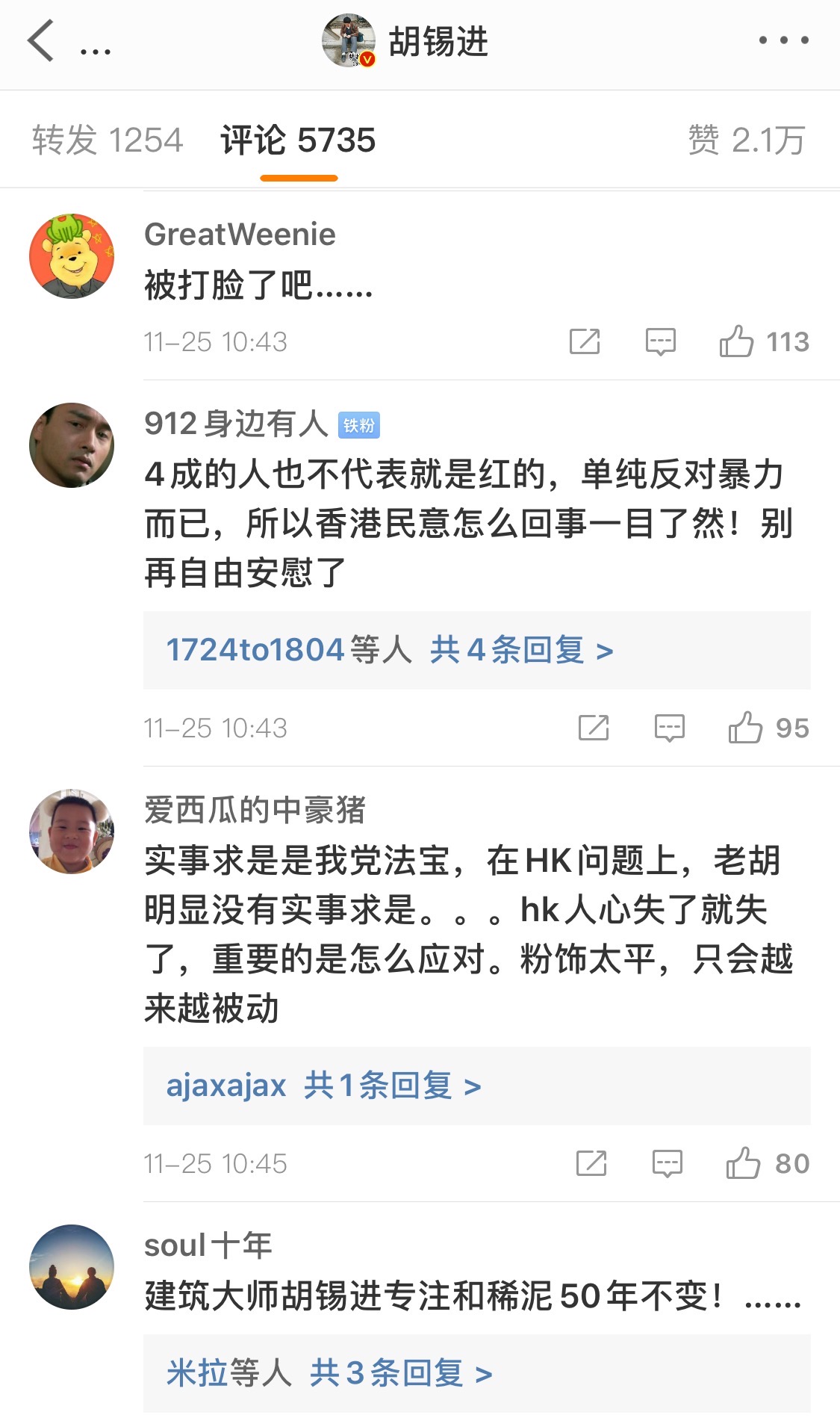 《环球时报》总编辑胡锡进在微博贴出社评后,网民反应热烈。胡锡进微博截图