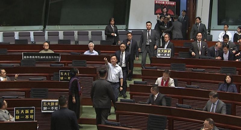 泛民主派议员在去年立法会复会后首个会议上作出激烈示威,令林郑月娥无法会上完成宣读《施政报告》,到翌日的答问大会也需两度暂停,个半小时内只能回答3名议员的提问。