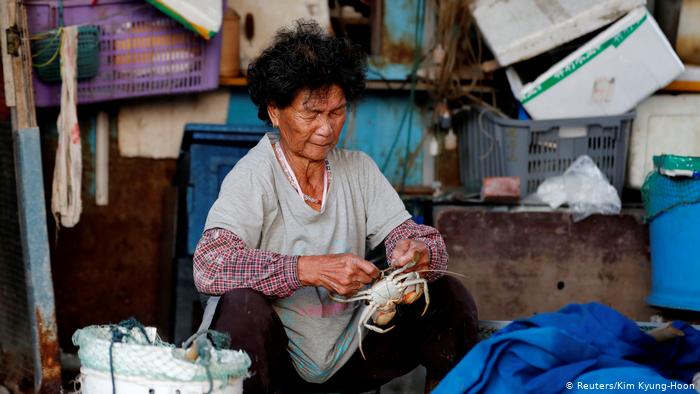 远离抗议浪潮 Leung Wong-hing用稻草捆绑着她和丈夫在深圳湾抓到的螃蟹。她的儿子和孙女今天将回家看望她们。他们的村子虽然位于香港,但是却远离催泪弹、警棍和示威者与警察之间的暴力。