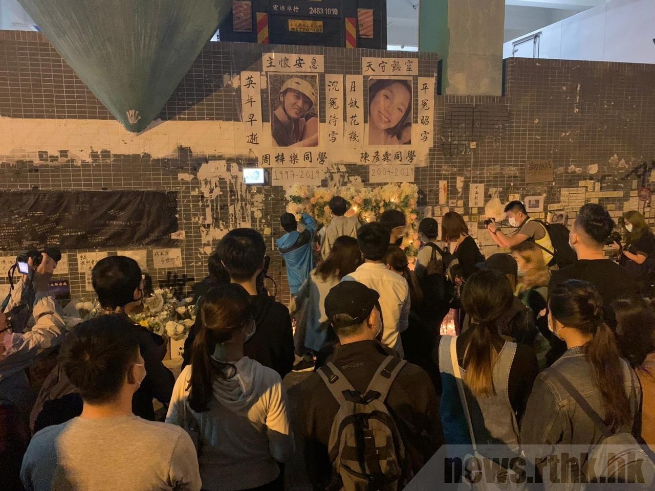 香港有网民晚上在将军澳尚德停车场外,悼念4个月前在该个停车场堕楼离世的科大学生周梓乐。大批市民在尚德十字路口一带聚集,多名防暴警察到场,举蓝旗警告在场人士参与未经批准集结,警方要采取截停搜查行动。警员在唐明街两边行人路拉起封锁线,禁止停车场外的过百人离开,包括市民、义务急救员及记者。