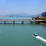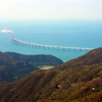 乘缆车前往大屿山途中观赏海天风光的景象十分壮美,香港国际机场与粤港澳跨海大桥等景观历历在目。特别是从缆车上俯瞰大海中壮观的粤港澳大桥,好像从陆地上架起伸进大海中的一条飞龙,而延伸的跨海大桥的龙头好似钻进了大海。