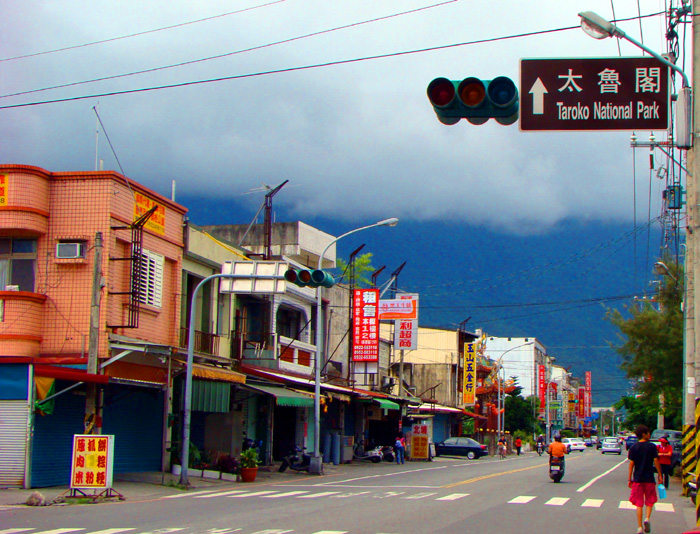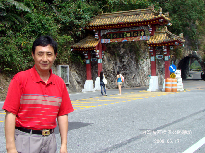 2009年5月17日上午8点半,游客们才从花莲市出发前往太鲁阁。首先到达的是“东西横贯公路”牌坊前,这里是东西横贯台湾公路的起点。穿过牌坊,往西就是著名的“东西横贯公路”,而随着“东西横贯公路”的宛转逶迤,将进入横跨花莲、南投以及台中三县,总面积达92,000公顷的台湾第二大自然生态公园–太鲁阁风景区。