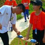 按照赛程,参赛的学生运动员们从三月三广场开幕式仪式起点出发,顺着规定线路跑入湿地公园的赛场,参赛者根据自己的线路,按图索骥需要用手腕的智能环打点,打完全部赛程的所有点位,最终跑到终点才能结束比赛。