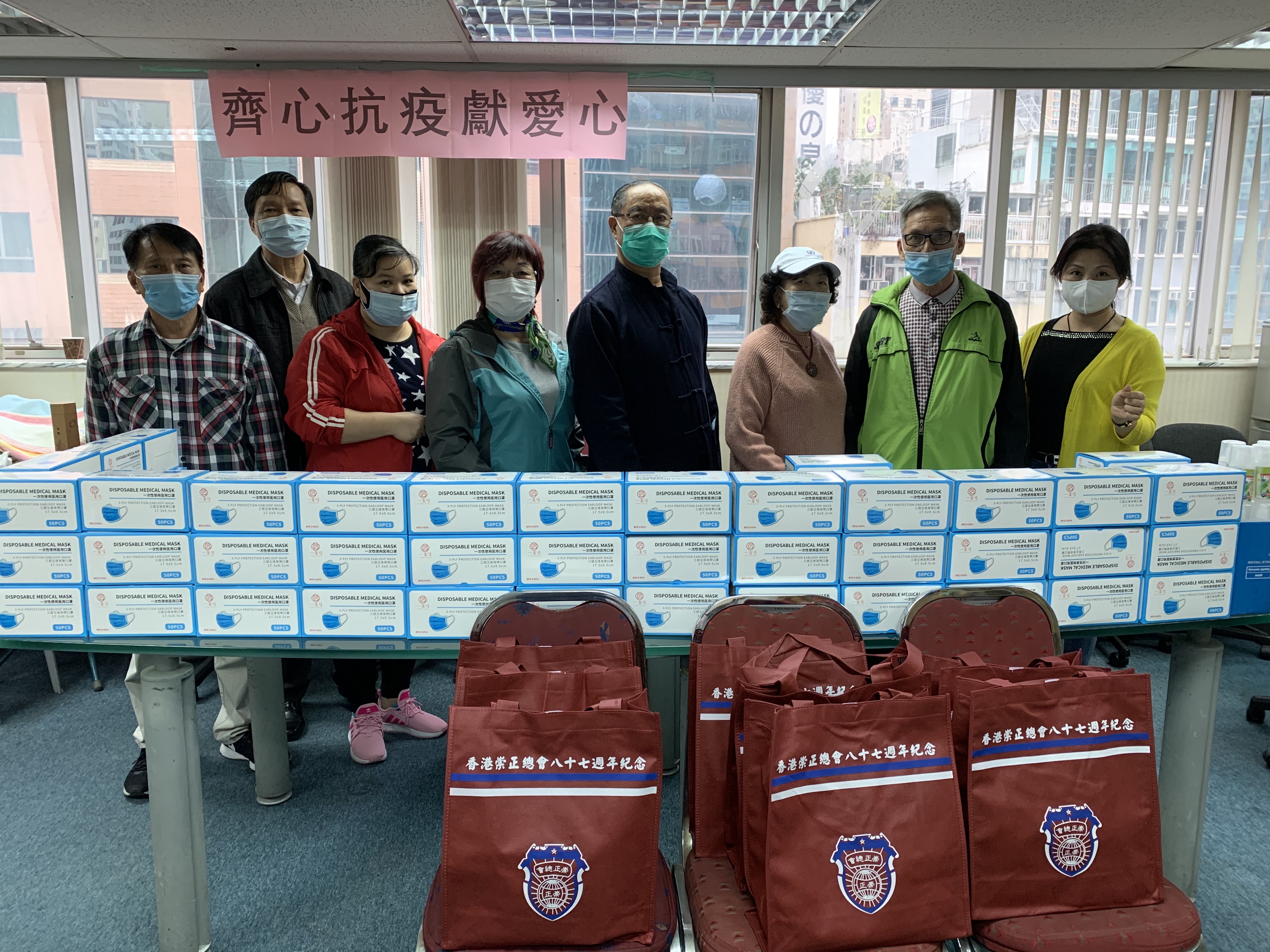(中華時報訊)新型冠狀病毒肺炎疫情現時在全球日趨嚴重,香港崇正總會於4月10-11日舉辦“齊心抗疫獻愛心”活動,香港崇正總會第37屆理監事會给會員派送抗疫常用消毒用品包,其中有口罩(一盒/ 50個)、搓手液(1支100ml)、消毒噴霧(1支100ml)。