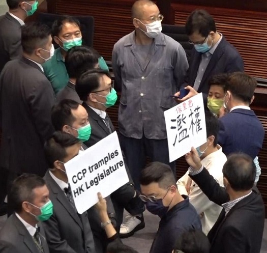 继“两办”早前介入后,香港立法会10天内再爆冲突。14名民主派议员先后被逐出会议室,建制派的民建联李慧琼随即当选内会主席。民主派表明,不会承认选内会主席的结果,批评建制派一再夺权。政府发言人说,欢迎内会选出主席,期望议会尽快回复正常运作。