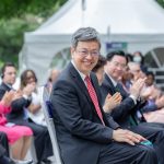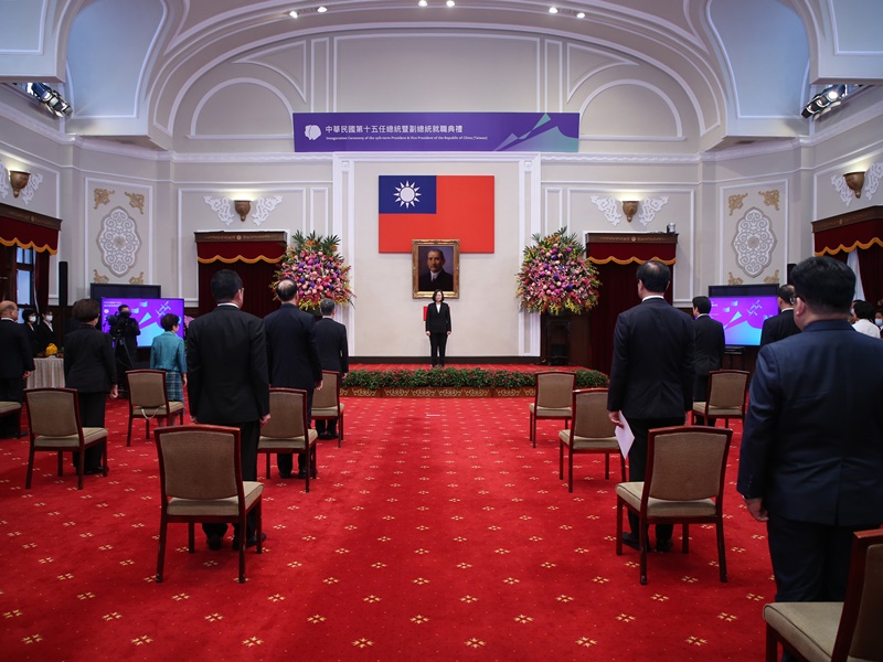(中華新聞通訊社/中華時報訊)這是一場很不一樣的總統就職典禮。基於防疫考量,總統府早早宣布取消大型活動,中華民國第15任總統蔡英文的就職演說改在台北賓館戶外舉行,僅邀請駐台使節、官員等少數人員參加。因為在戶外,保持社交距離就座觀禮的來賓不必戴口罩,鏡頭捕捉到他們的笑容、表情,台灣疫情漸趨緩和,大家總算能稍微喘口氣了。