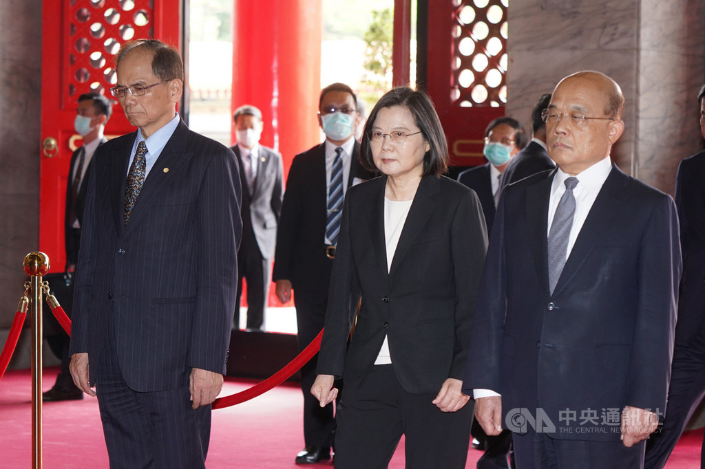 (中華新聞通訊社/中華時報訊)蔡英文總統、賴清德副總統昨天就任中華民國第15任總統、副總統。今天上午他們赴忠烈祠,向國父暨忠烈殉職人員致祭,五院院長陪同。