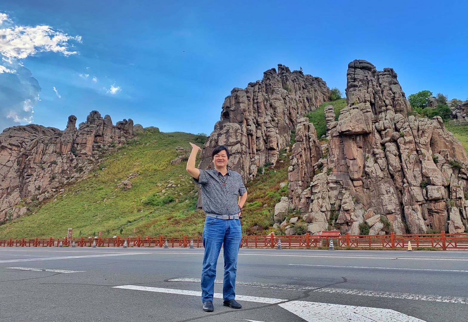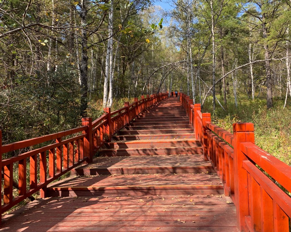 阿尔山的第二天上午,我们参加完“2019首届全国少数民族围棋大赛”,我就迫不及待与甘肃省围棋协会秘书长蒋立峰、宁夏回族自治区围棋协会秘书长毕延青等驱车去阿尔山森林公园,从阿尔山小镇出发,沿途景致依然很美,就是马路面不好,坑坑窪窪簸来到阿尔山森林公园,马路在扩路中。