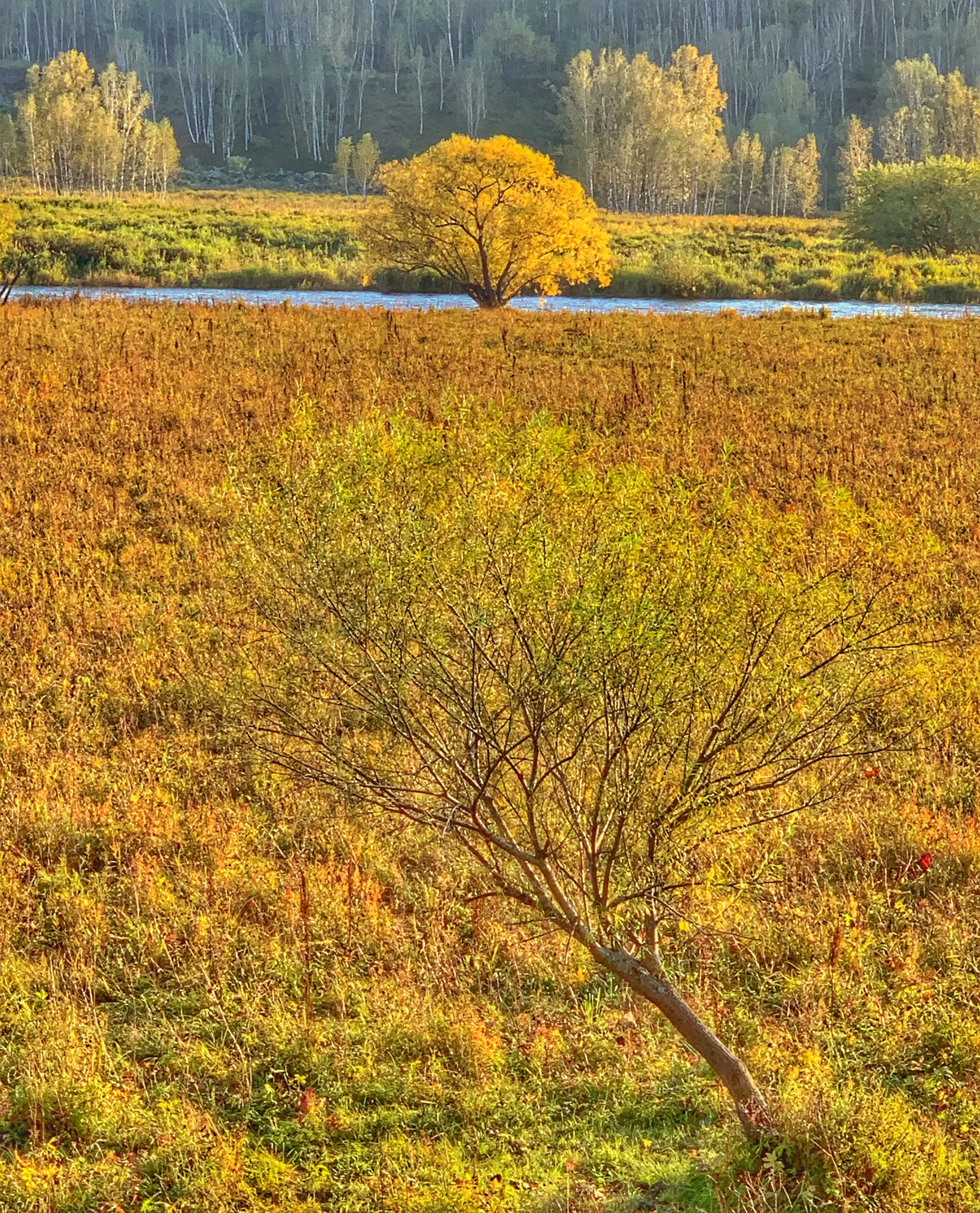 金色的麦子和落叶,层林尽染,配上金灿的阳光,尽显生命华章。