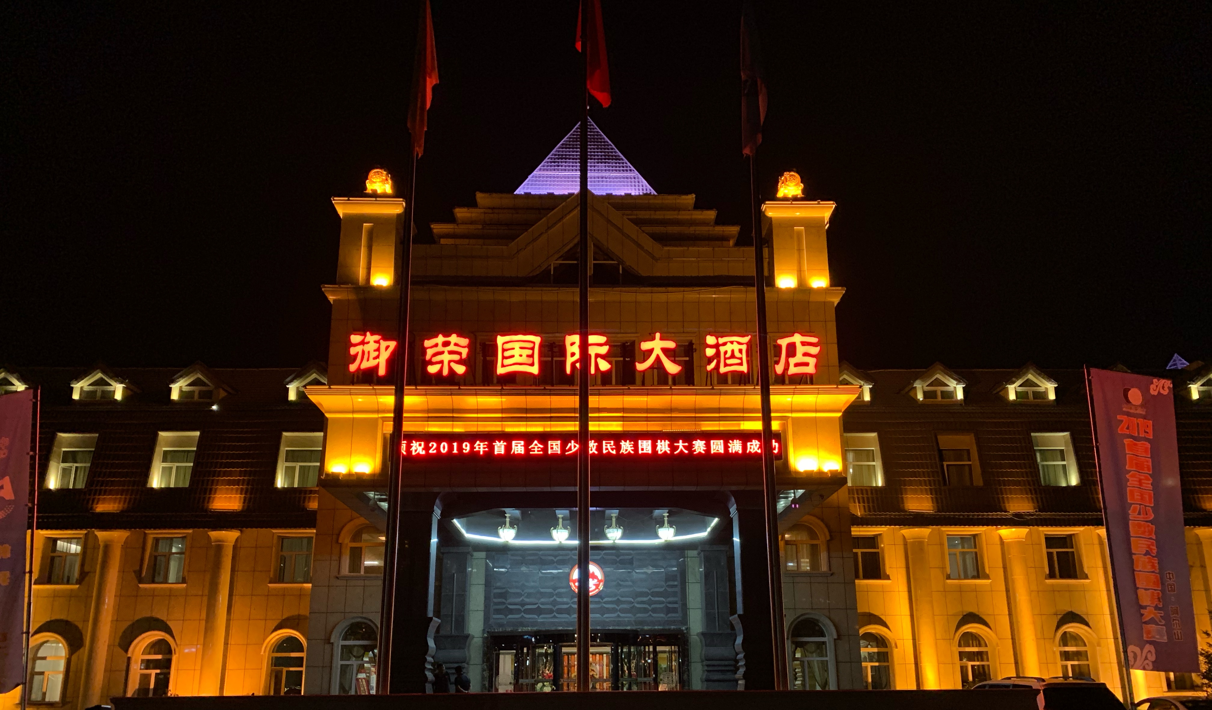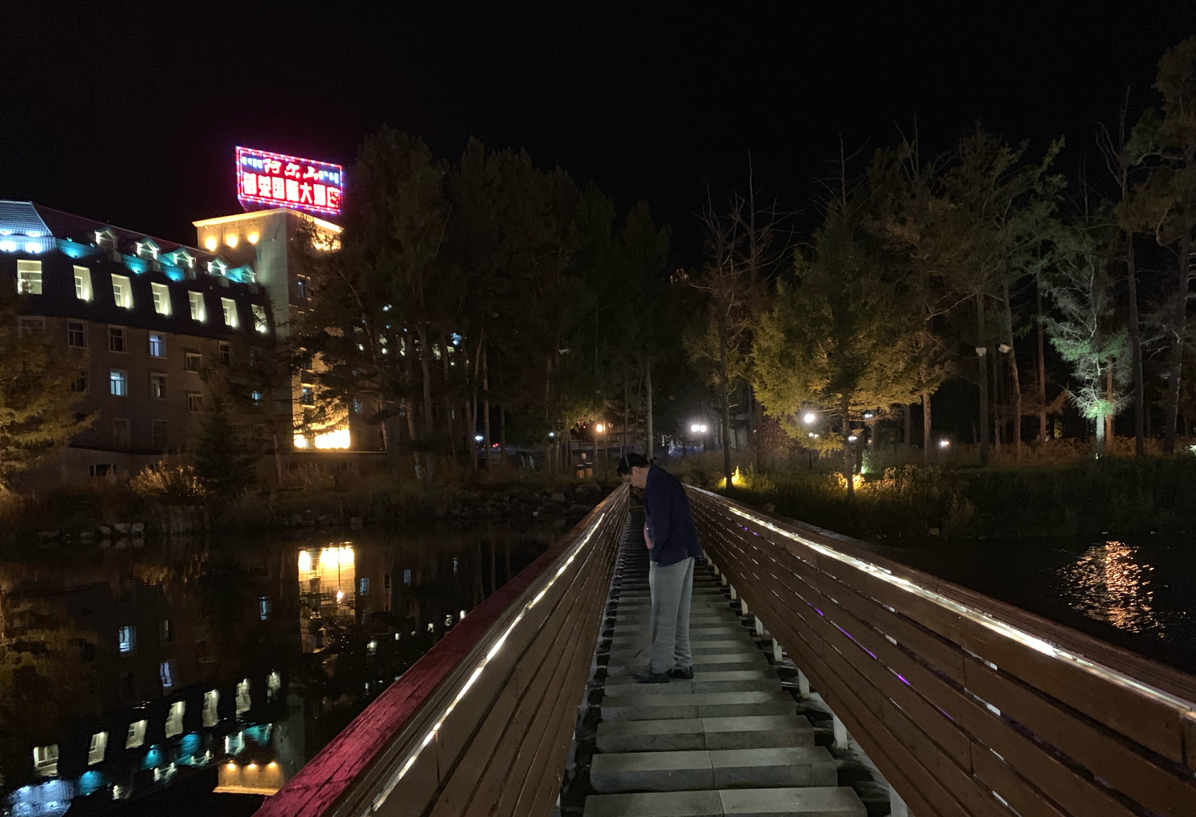 遐逅是缘份,夜幕降临,我与甘肃省围棋协会秘书长蒋立峰从下榻的酒店出来,走一走阿尔山市,也想了解一下夜生活,阿尔山位于中蒙边境,尽管只是一座县级市,我们到处都能见到各种风格的欧式建筑,中西合璧,每到夜幕降临,灯光打在这些高大雄伟的欧式建筑上,就会显得格外吸引眼球。不过,我们走在阿尔山的街头,甚至会恍惚以为自己不小心穿越到了某个欧洲小镇。