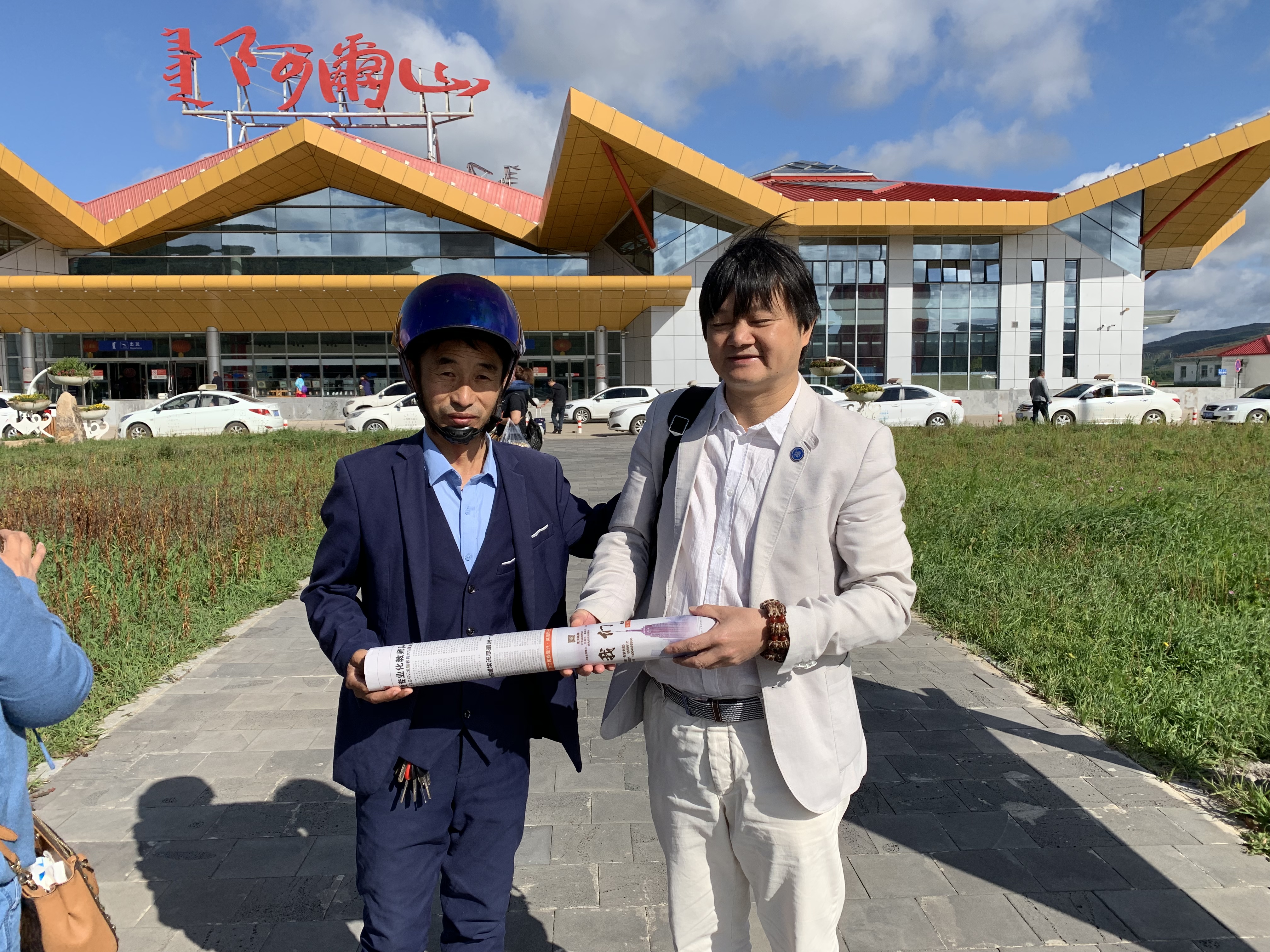是的,在我离开阿尔山那天,已经有一丝丝的秋凉了,我的老朋友內蒙围棋协会副主席布林送我到了阿尔山机场,画家陈国生也专程来送行,并赠送了两幅冰雪水墨画给我,我挥别了朋友、登上了去北京的航班…