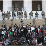 首都華盛頓繼續高度戒備,逾2200名國民警衛軍奉命出動。面對大批示威者在白宮和國會山莊外聚集,他們築起人鏈,並且用軍車架設路障,防止示威者走近白宮範圍。