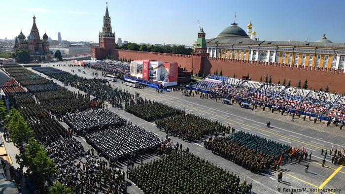 俄罗斯本计划今年5月9日”胜利日”在红场举办阅兵,纪念战胜法西斯德国75周年。因新冠疫情影响,这一庆典推迟到6月24日,这是1945年苏联首次举行胜利阅兵庆典的日子。在莫斯科,13000名士兵参加了此次规模空前的阅兵游行。除莫斯科外,俄罗斯其它城市也有阅兵等庆祝活动。据俄国防部称,共有64000名士兵参加了各地举办的阅兵。大型集会在莫斯科尚未被重新允许,周三的阅兵是个例外。队列中的士兵未戴口罩,也未保持安全距离。