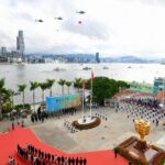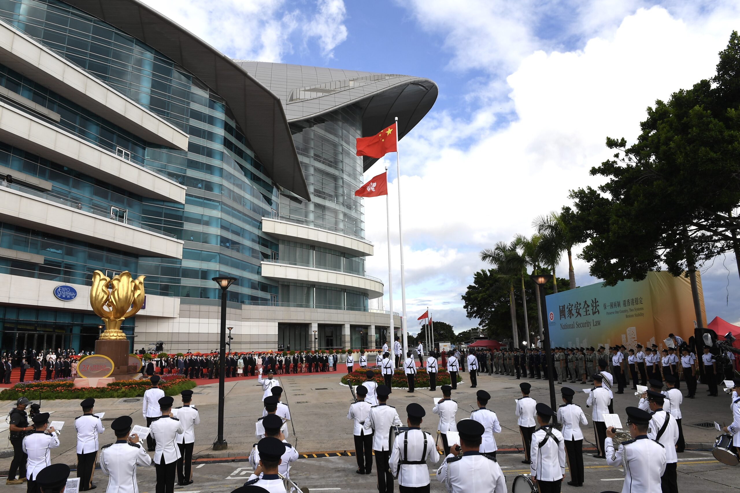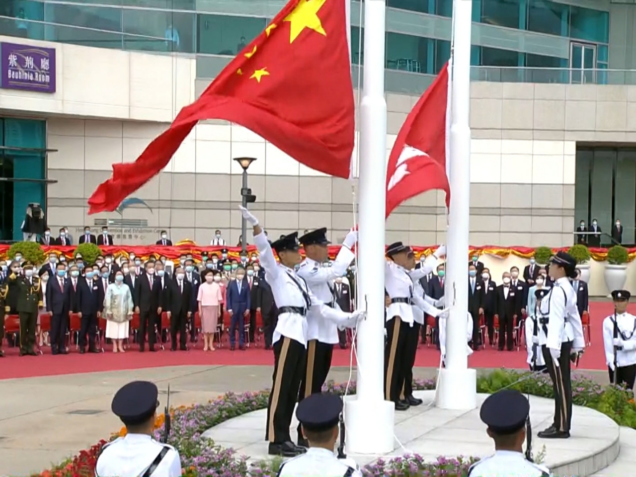 (中华时报香港讯)香港特區成立23周年,灣仔金紫荊廣場早上8時舉行升旗儀式,出席升旗儀式的嘉賓包括行政長官林鄭月娥、前特首董建華、梁振英、曾蔭權,各司局長、行會成員、立法會主席和部分建制派議員、終審法院首席法官馬道立,以及中聯辦主任部駱惠寧、外交部駐港特派員公署特派員謝鋒,以及解放軍駐港部隊司令員陳道祥等。