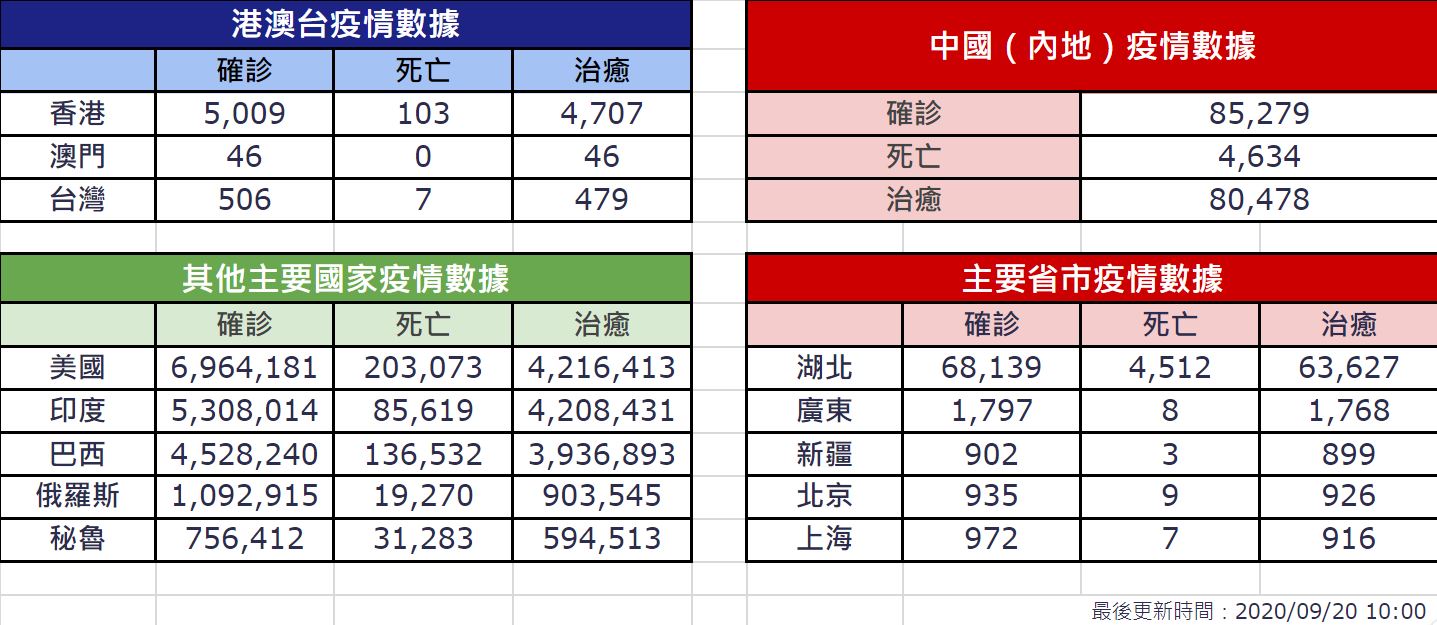 法新社彙整官方數據顯示,截至香港20日10時,全球累計超過3050萬人確診,至少95萬3025人病故。世界衛生組織(WHO)專家表示,全球每週約有5萬人染疫喪命,多到令人無法接受。