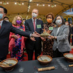 會場設有盛橋刈包、菓實日及N-Ice Taipei等知名美食攤位,總統也與使節團團長暨聖克里斯多福及尼維斯駐臺大使哈菁絲(Jasmine Elise Huggins)、美國在台協會台北辦事處處長酈英傑(William Brent Christensen)伉儷等一同參觀攤位,聽取紅蔥滷肉飯刈包、「紅龜」等特色美食介紹,亦親自製作客家擂茶雪花冰。