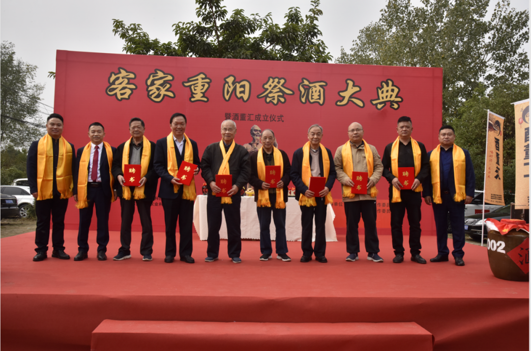 酒董汇首任会长吴修明为大家介绍的酒董汇的由来和成立酒董汇的初衷,希望以酒董汇为平台,汇集海内外客家朋友,“喝好酒,交好友”。吴会长还同酒董汇执行会长林先富、李强学一起为钟世钦、张兴定、李天久、钟远超、李盛清、李军、刘开亮送上酒董汇顾问聘书。希望各位领导给予酒董汇大力支持和指导。随后,酒董汇各位会长同顾问一起进行重阳美酒封坛仪式。