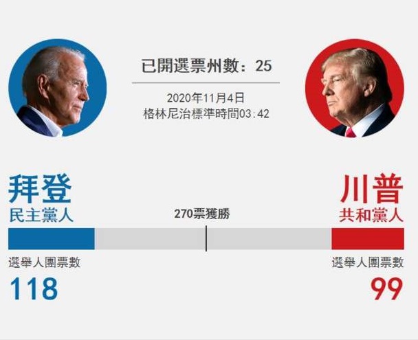 目前为止尚未出现有州份爆冷的情况,但是现在才刚入夜。来看看,现在的预测都是哪个候选人赢了哪些州?