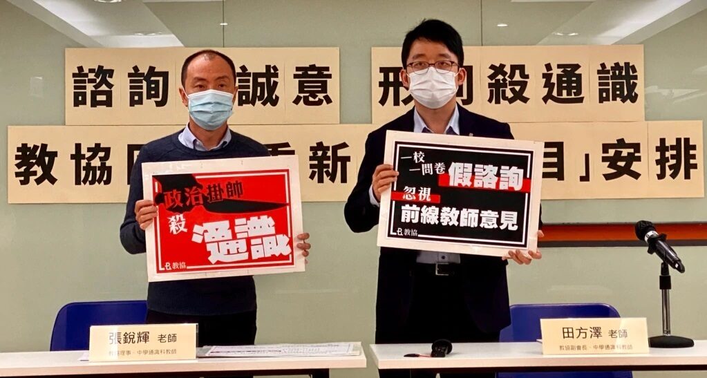 教协副会长、通识科教师田方泽表示,综观教育局的咨询文件,新科目删减了大部分通识科原有的课程,新增内容只聚焦中国的正面发展及香港在一国两制下的角色,业界对感到愤怒,批评当局无视前线教师的意见,推出有前设的“假咨询”,方案不容异议,难免让人质疑是政治干预课程。