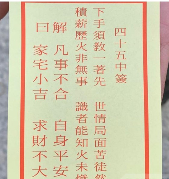 今日是大年初二車公誕,鄉議局主席劉業強為香港求得第四十五籤的中籤。籤文是「下手須教一著先,世情局面苦徒然;積薪歷火非無事,識者能知火未燃」,解曰:「凡事不合、自身平安、家宅小吉 、求財不大」。解籤師傅陳天恩表示,車公認為政府抗疫措施舉棋不定,希望當局一氣呵成解決疫情,否則出現第5波、第6波疫情才知錯,經濟將更加會走下坡、市民會更惶恐。陳天恩又說,車公認為當局早前的封區措施勞民傷財,疫情只會無了期,最好是仿傚內地封城,全民檢測和禁足28日,才能完全控制疫情,經濟自然會復甦。