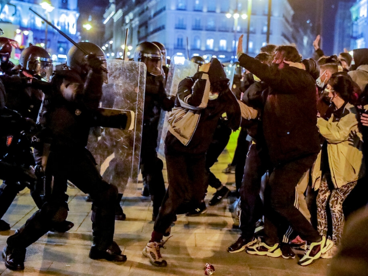 西班牙首都馬德里及巴塞羅那等多個城市,連續第二晚有示威,要求釋放早前被捕的說唱歌手哈塞爾。示威演變成警民衝突,全國至少40人被捕,數十人受傷。巴塞羅那一名女子據報被橡膠子彈擊中,其中一隻眼失明。