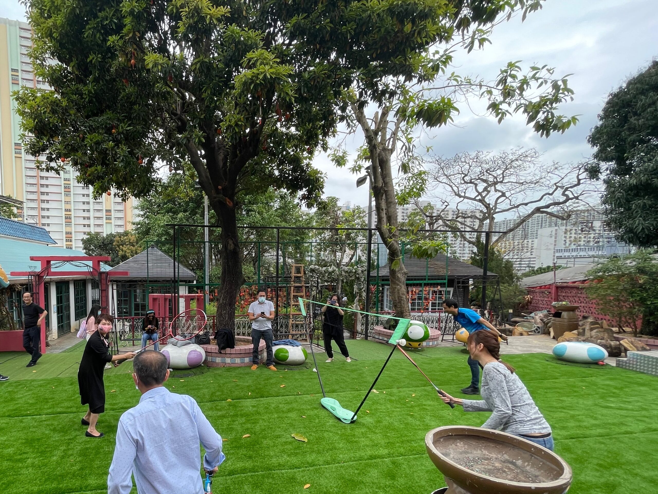 推介會後,教練更與各方熱愛羽毛球的政商名人, 在龍華酒店室外草坪地進行羽毛球交流切磋球技。