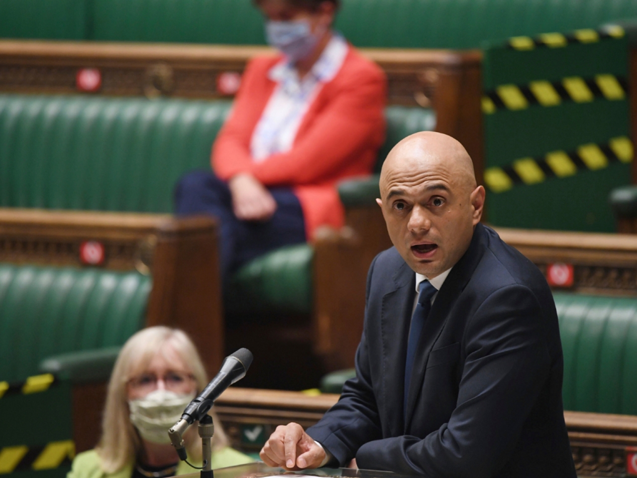 英國衛生大臣賈偉德說,在新型冠狀病毒檢測中呈陽性,徵狀輕微;而他之前已完成兩劑疫苗接種。(美聯社資料圖片)