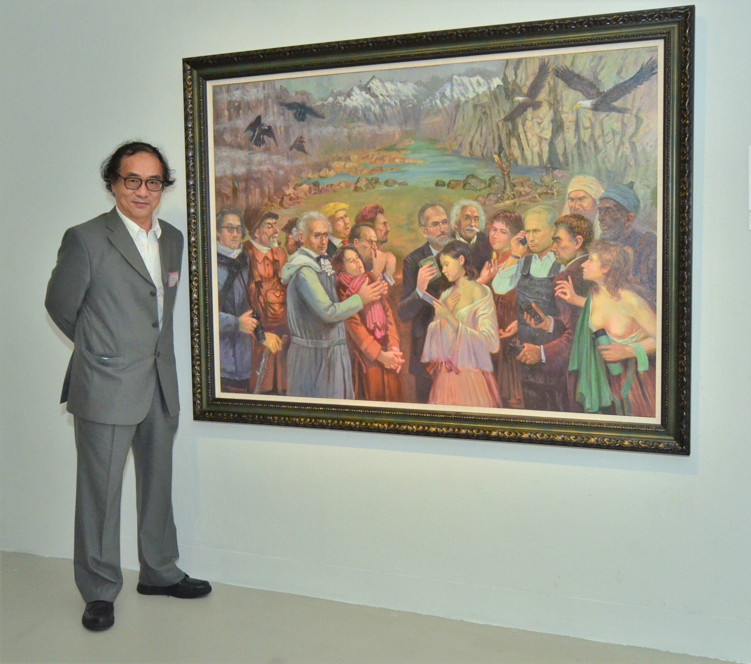 旅居法國多年,精於風景、人物畫的林鳴崗老師,此次其中一幅《艱難歲月》亮相展覽,引發矚目。藝術家將不同時代的歷史人物組織在同一畫面中,群像的塑造,畫面時空的錯位,地理場景的構建……,歷時三年多,林鳴崗將眼睛所看到的,以及生於這個時代的觀察與思考,都融合匯聚在這幅主題性作品中,引領觀者至藝術家所特設的意境中,跟隨人物的命運共赴思考,一同悲喜。