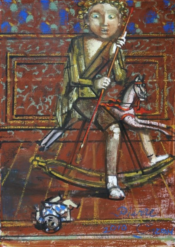 「那些意大利文藝復興時期帶有戰鬥場景或宗教場景的繪畫帶給我創作的靈感。我讓這些畫上演了孩子們之間的遊戲,這就像一場比賽,是成年人制作的戲劇。在這些畫裏,我讓孩子們變為戰士,讓孩子們之間的遊戲模擬了戰鬥。」也許正因為他已看透世俗之繁複,厭倦了对社會万象之描繪,故而進入如此天真超脫之境地。