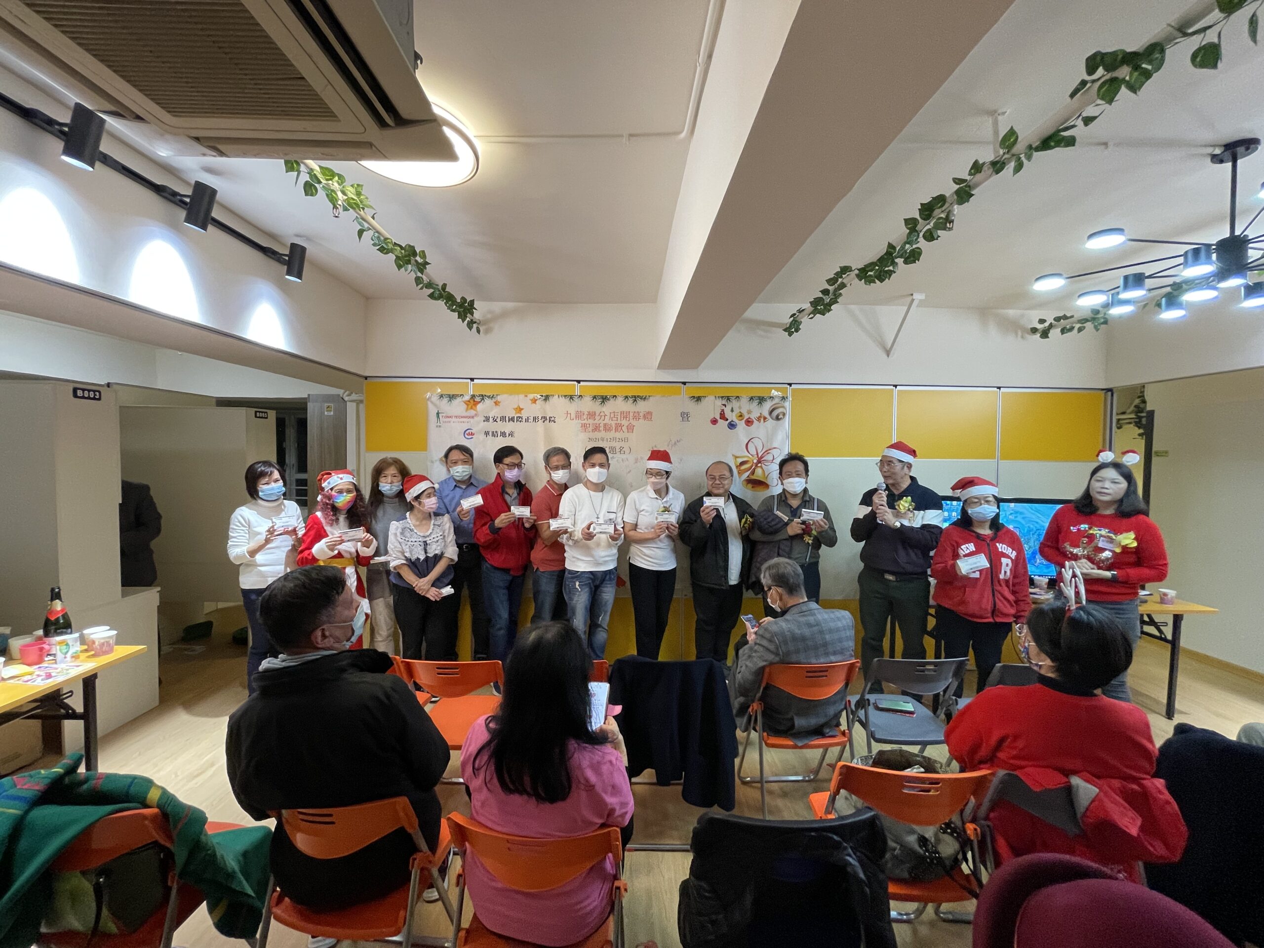 今天是圣诞节,参加者大多穿戴具有聖誕氣氛的衣飾 ,也按照传统习俗自備一份價值HK$50以內的小禮物作互相交換用及抽奖。