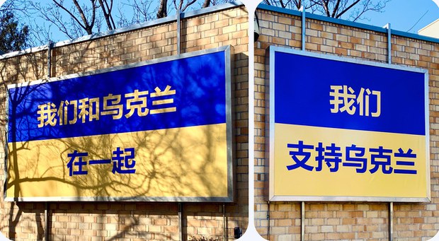 中國拒絕譴責俄入侵烏克蘭,只呼籲談判解決問題。絕大多數中國社群網站用戶表示支持俄羅斯的立場,很多人將衝突歸咎於北約擴張。  網路之外,亦出現對莫斯科表示同情的舉動。昨天,加拿大駐北京大使館牆上一張「我們與烏克蘭站在一起」的海報被涂鴉,有人以紅色在上面寫上抨擊北約的口號。