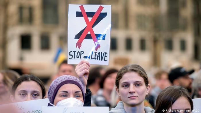 在德國多個聯邦州,公開展示「Z」符號、聲援俄羅斯侵烏戰爭被視為非法。圖為阿姆斯特丹3月12日的反戰遊行