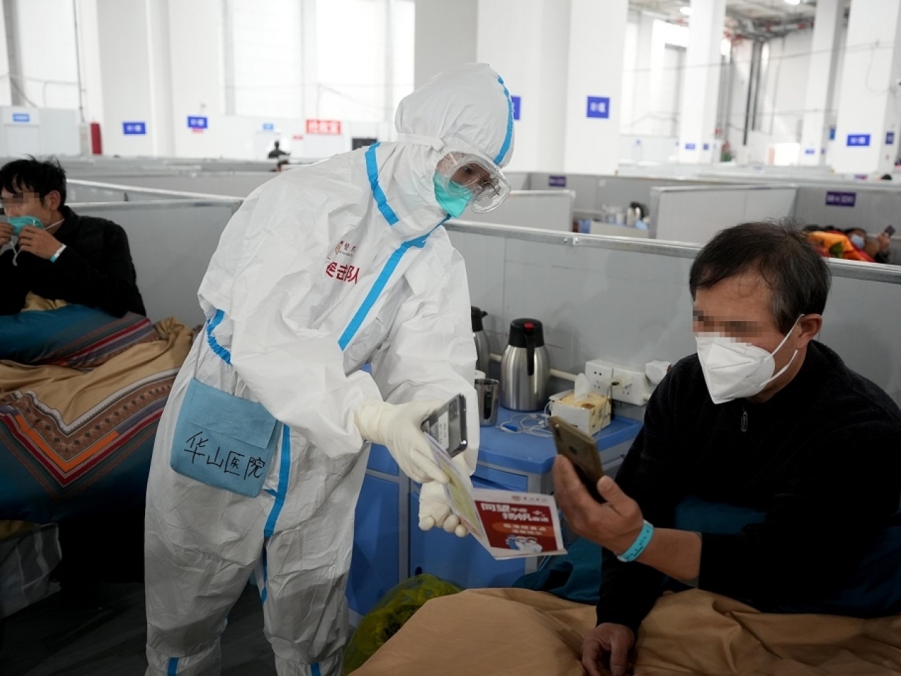 上海方艙醫院的醫護人員與患者交流。(新華社資料圖片)