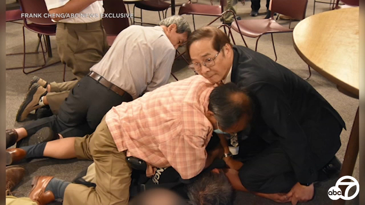令人毛骨悚然的照片: #ABC7獲得的獨家圖片 顯示,大衛周在拉古納森林埃爾托羅路的日內瓦長老會教堂內被英勇的會眾制服的那一刻。 _