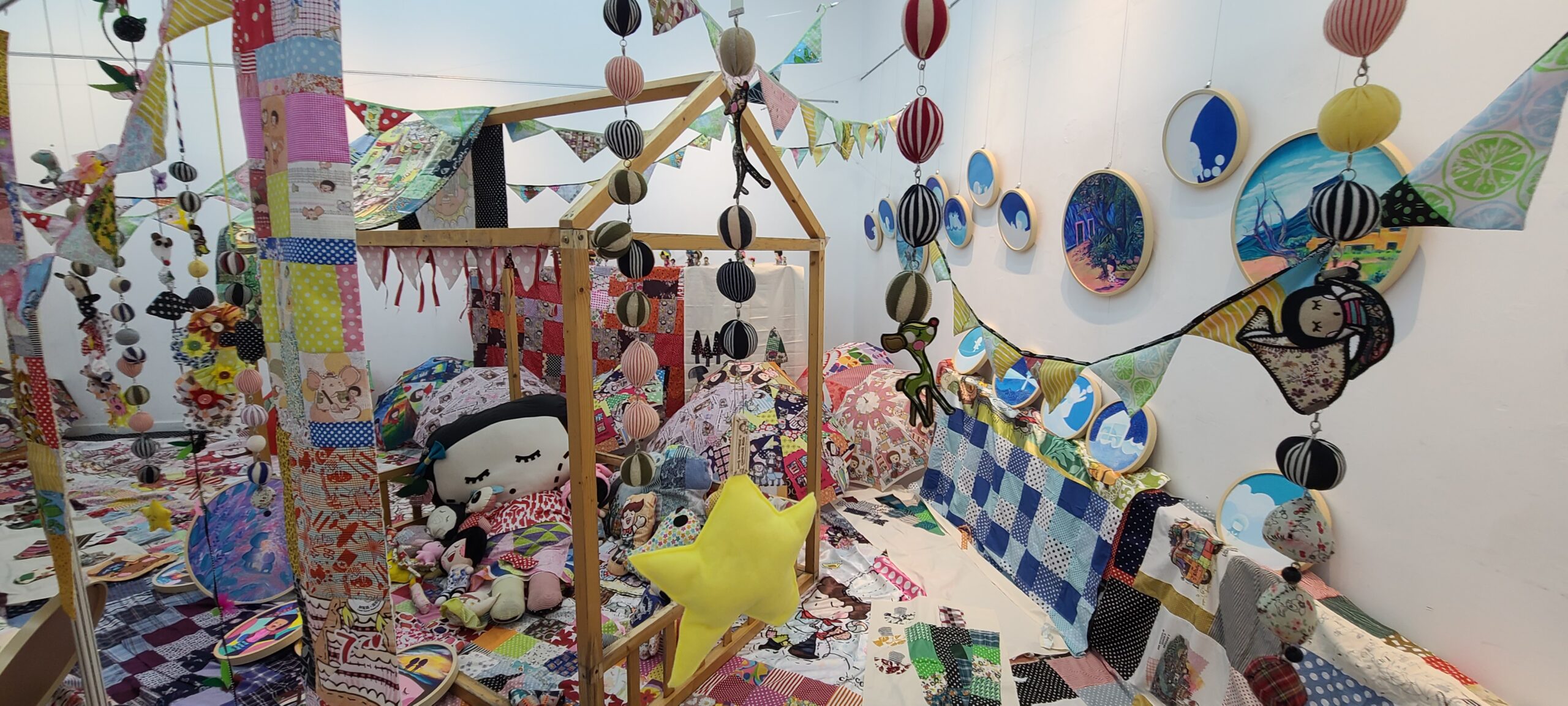 展覽空間內展示了麥雅端大小不同的畫作,風格反璞歸真,主要以圓形為主,避免方正畫框給人太刻版正經的感覺,凸顯藝術家對多樣可塑性的追求;記錄了麥氏孩提時代在赤柱馬坑木屋區的生活、成長後搬到城市唸中學,以及後來到外國小鎮留學修讀純美術的經歷,以藍調為基調,滲出回憶中濃濃的地道香港生活味道;另外,麥雅端亦向其欣賞及對其有所啟發的藝術家致敬,包括陶瓷藝術家Clarice Cliff、法國詩人兼藝術家Jean Cocteau、抽象派大師畢卡索、以「MAMAM」巨型蜘蛛雕塑馳名於世的Louise Bourgeois、以及將波點南瓜發揮得淋漓盡致的日本藝術家草間彌生等,他們都是藝術家藝術靈感的泉源。此外,入口對着的牆壁上特設多個大小與高低不一的小窗口,觀眾可以一窺藝術家想像中的夢幻生活,當中更藏有藝術家的珍貴畫作在不同角度之中,等待觀眾在窺探過程中逐一發掘。