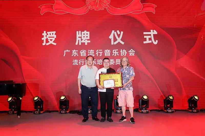 嘉宾致辞后,会上为广东省流行音乐协会、殿堂文化、比亚迪声音设计工作室、广州市流行音乐协会、太阳之子进行揭牌仪式,并由多位领导为广东省流行音乐协会的音乐版权委员会、语言艺术委员会、音乐剧委员会、流行音乐培训委员会等委员会进行授牌仪式。