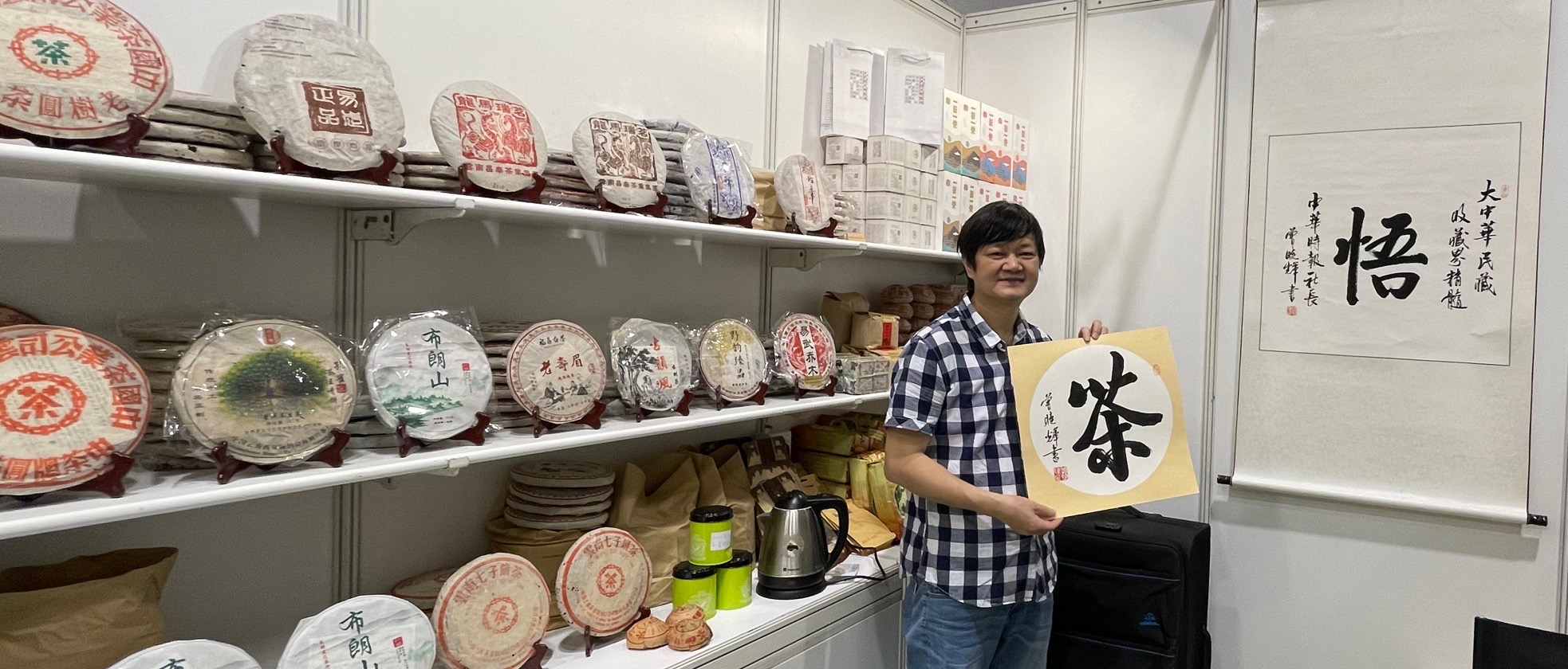一路风情文化中华书法图辑地道美食特产手信 名家題字的十二生肖宜興紫砂壺與百年普洱茶亮相香港國際茶博會 由 中華時報總編室 - 2022年8月11日 (中華新聞通訊社/中華時報香港8月11日訊)香港國際茶展于8月11日在香港會展中心舉行。 中華時報傳媒集團創辦人、香港美術學院院長曾曉輝教授的單字書法及所題寫的字十二生肖宜興紫砂壺等與「同安茶行」百年的普洱茶同時亮相博覽會上,博得了媒體和業內人士的關注。