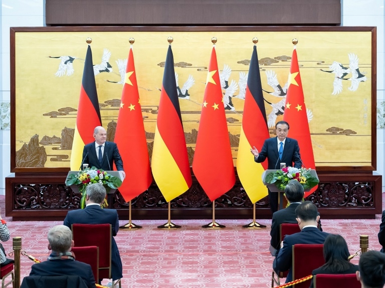 同習近平會面後,國務院總理李克強昨天下午在人民大會堂為訪華的德國總理朔爾茨舉行歡迎儀式,然後舉行會談。在會後雙方共同的記者會上,肖爾茨表示,希望中國運用其對俄羅斯的影響力,為盡快結束烏克蘭戰爭做出努力,還說他和習近平一致認為核威脅是危險和不負責任的。李克強則呼籲烏克蘭衝突不能再進一步升級,並強調中國將繼續保持開放,保持對國際投資的吸引力。