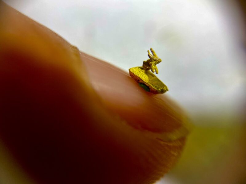 毫芒雕刻家陳逢顯為慶祝兔年,以黃金雕刻出世界最小黃金兔子,尺寸僅0.1公分,兔子悠閒的樣子,非常的生動可愛,溫柔、安逸的兔子,將帶來台灣經濟繁榮穩定,生活品味更好的一年。