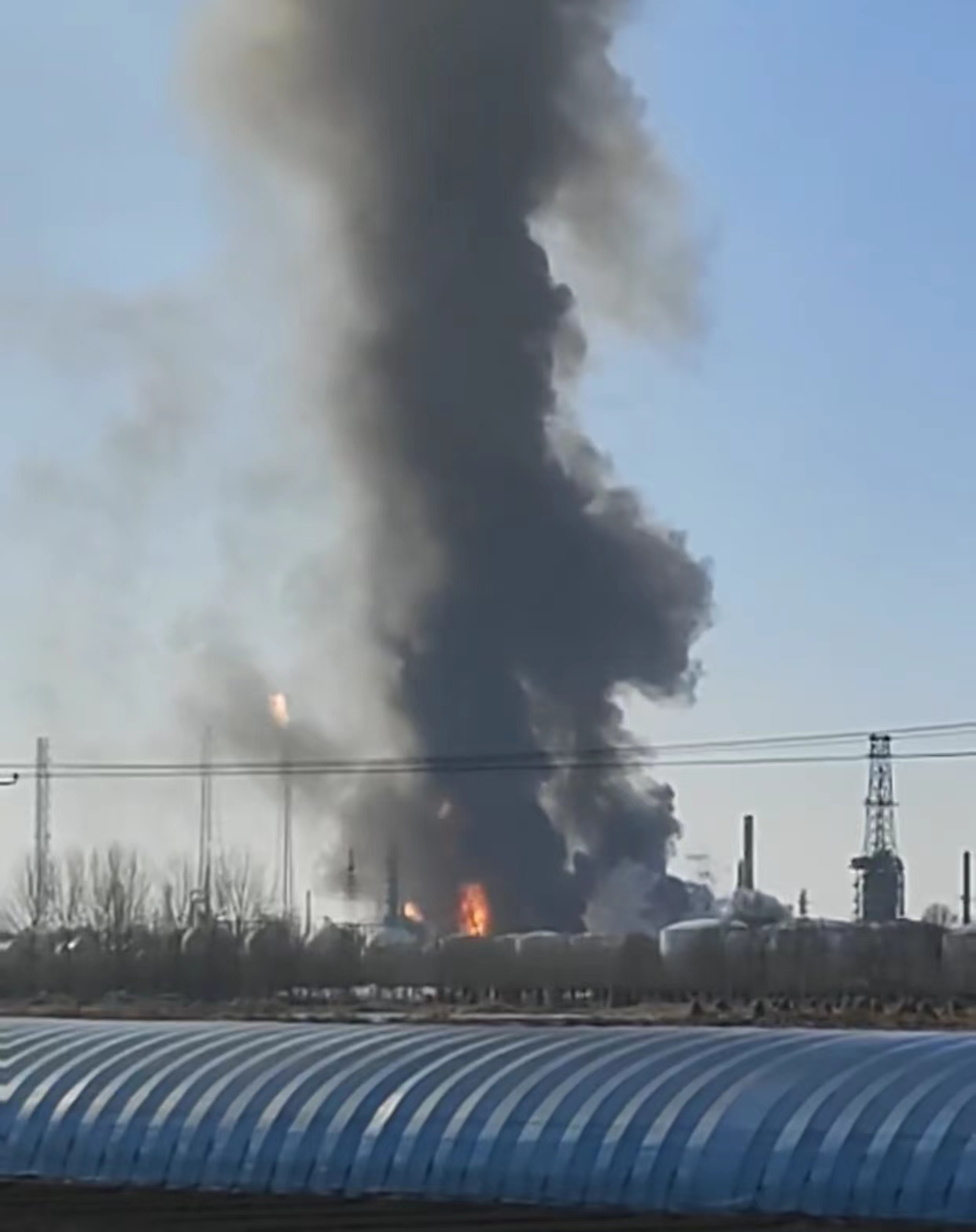 【中华时报/中华新闻通讯社 记者 王辉 辽宁电】1月15日13时27分左右,辽宁省盘锦市盘山县境内的一化工厂发生爆炸,事故现场浓烟冲天,燃起熊熊大火。