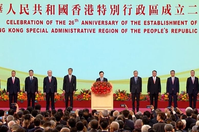 (中華新聞通訊社/中華時報7月1日訊)今日是香港特區成立26周年,灣仔金紫荊廣場舉行升旗儀式,特區政府在會展舉行慶祝酒會,行政長官李家超在酒會上致辭時表示,特區政府帶領香港走出陰霾,在復常快車道,正全速前進。