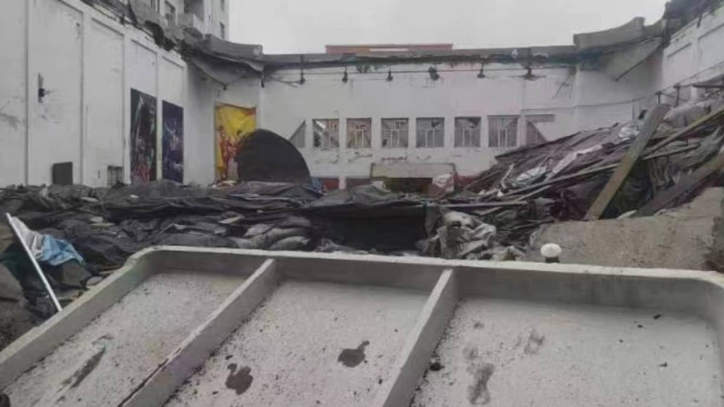 據報,事發前的體育館內部照片顯示,該建築內部牆壁斑駁,牆面有破損、漏雨情況。