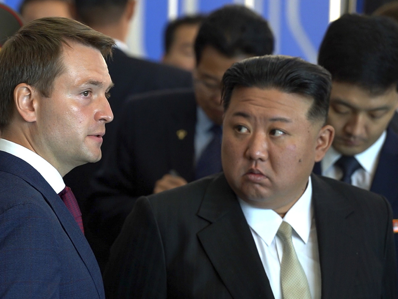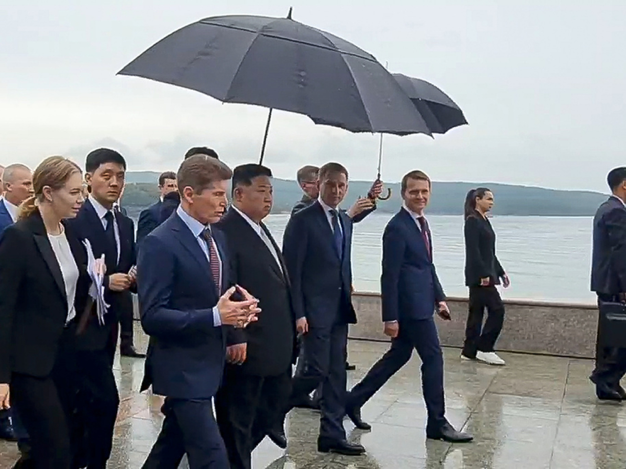 金正恩在列車上向俄羅斯自然資源與生態部長科茲洛夫率領的俄方代表團揮手告別。列車離開時,現場奏起《斯拉夫送行曲》。塔斯社說,金正恩的專列駛向大約250公里外的邊境。