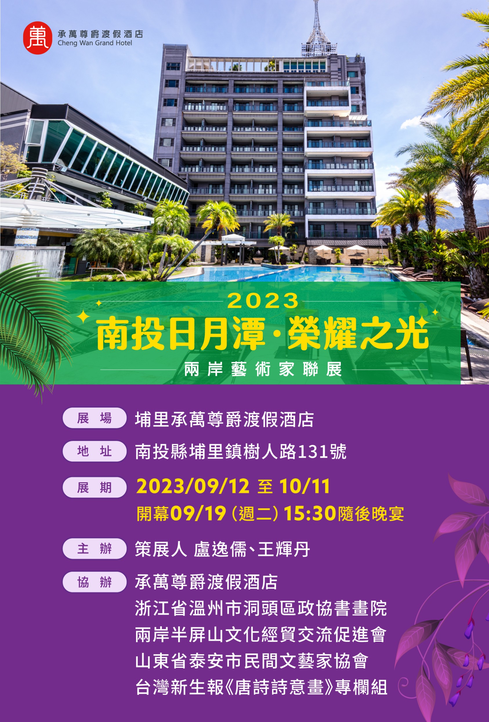 【記者王輝丹/埔里報導】埔里再次掀起觀光文化藝術風潮!二○二三年南投日月潭「榮耀之光」兩岸藝術家聯展日前在南投埔里承萬尊爵渡假酒店盛大開幕,旅行商業同業公會全聯會榮譽理事長姚大光是這次備受矚目聯展的重要推手,為此次盛會成功的舉辦發揮了重要作用。