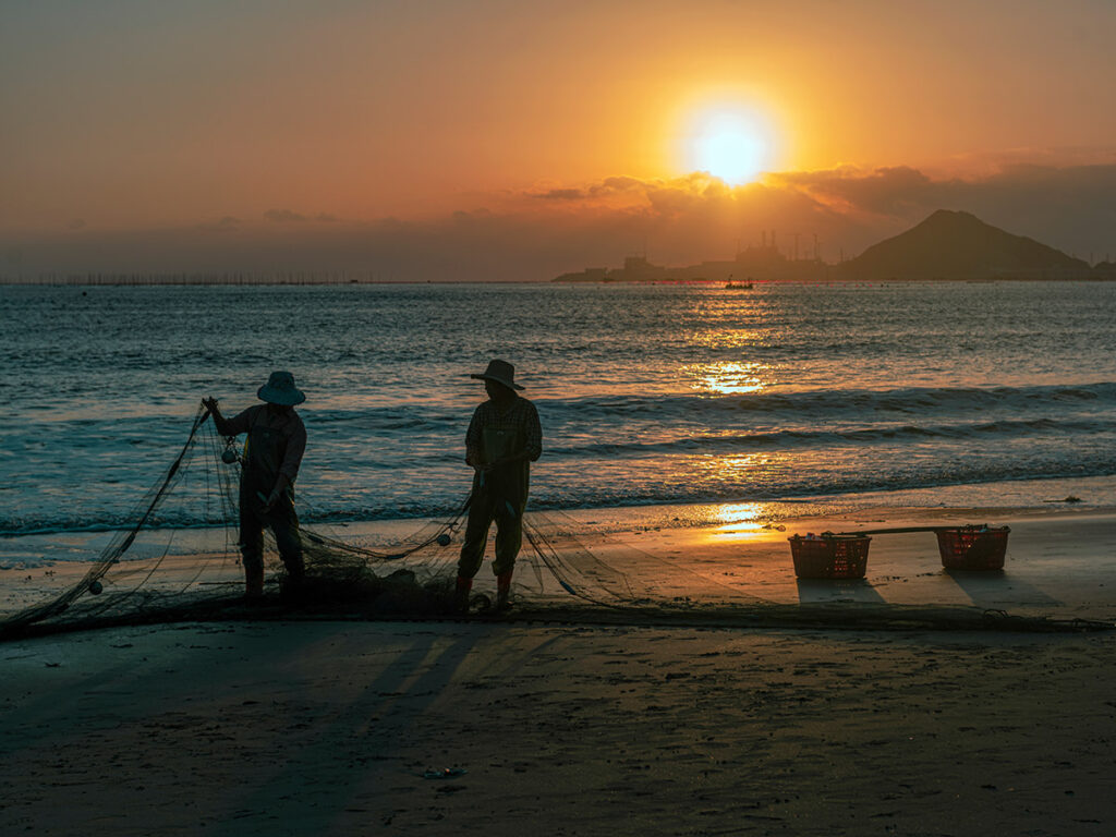 作品簡介:2022年9月25日攝於福建霞浦。日出時大海,霞浦的沙灘,趕海漁民的一天又開始了。