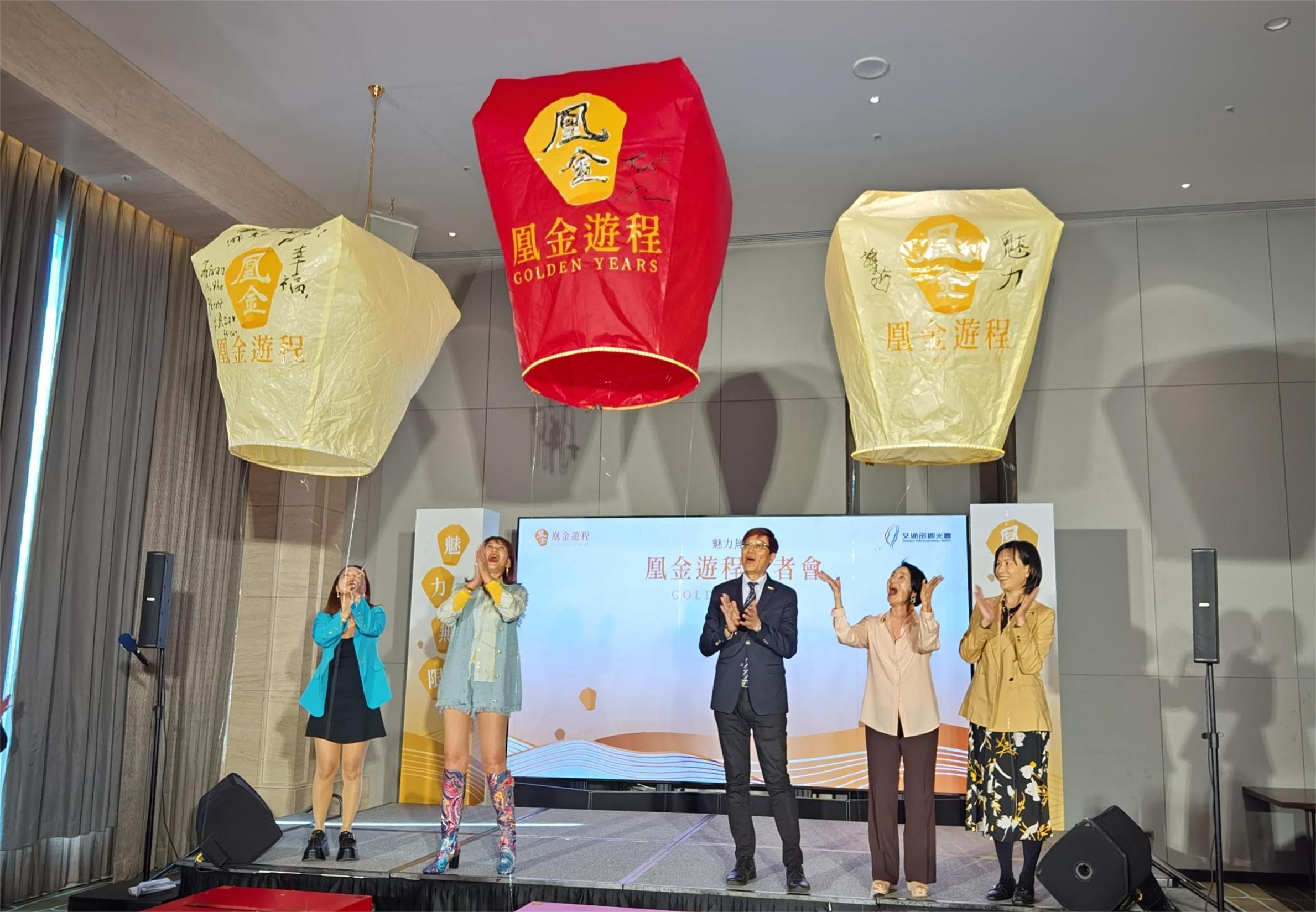 觀光署副署長林信任上午亦出席記者會,並在天燈上揮毫寫下:「凰金」二字,與在場嘉賓一同合影,象徵凰金遊程認證即將開跑。林副署長表示:「樂齡族群有能力、有時間,是我們首要希望瞄準的客群,加上2023年臺灣的醫療照護指數為全球第一,我們希望把臺灣打造成健康旅遊第一品牌,吸引國內外樂齡族旅客都嚮往到訪的目的地。觀光署也即將推出『凰金遊程Golden Years』認證標章,預計明年就會正式上路。」